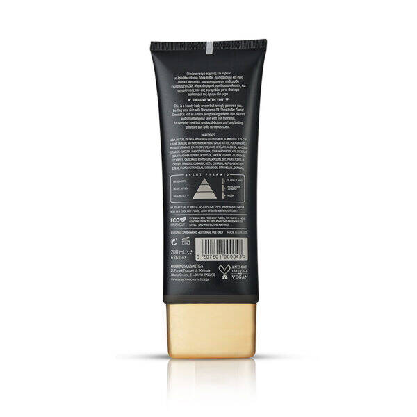 Πλούσια κρέμα για τα χέρια και το σώμα με έλαια macadamia ,αμυγδάλου και βούτυρο karité (shea butter) για πλούσια ενυδατική δράση που αποτρέπει την απώλεια υγρασίας χωρίς να λιπαίνει την επιδερμίδα και απορροφάται άμεσα. Ενισχυμένη με το My Musk, ένα φρέσκο και δροσερό άρωμα που θα σας χαρίσει μοναδική αίσθηση καθαριότητας.